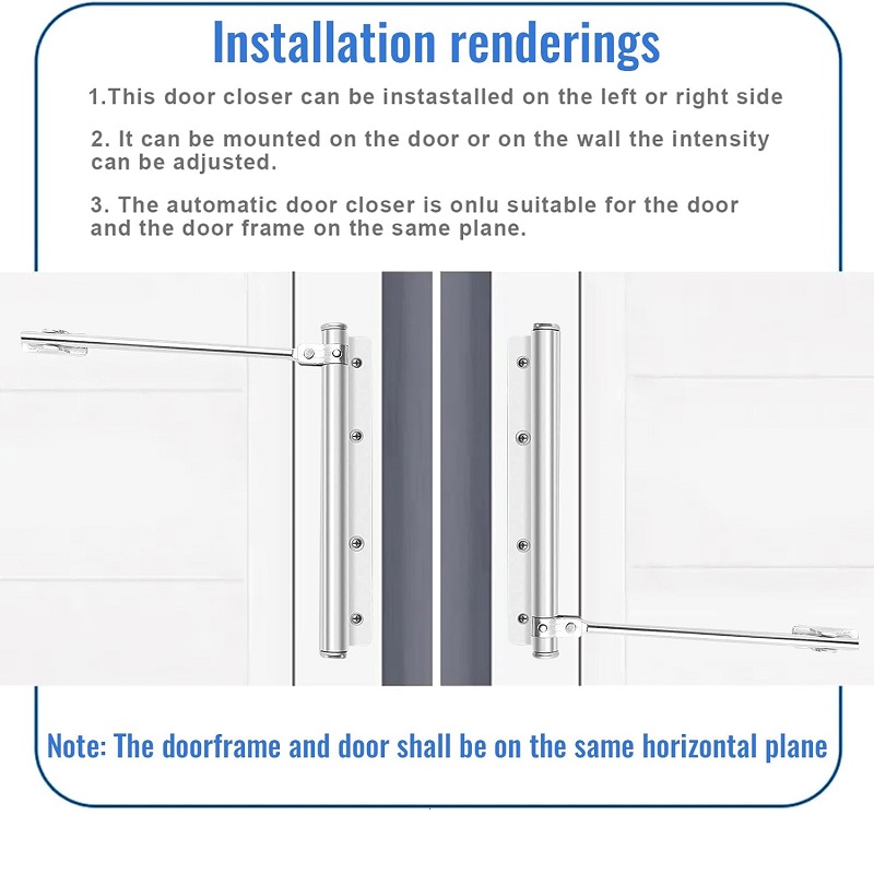 Овој автоматски затварач на врата од нерѓосувачки челик е производ кој носи подобрена безбедност, естетика и практичност во секој простор. Со дискретно интегрирани невидливи пружини, ова поблиску обезбедува беспрекорна завршница на вратата, истовремено обезбедувајќи високо ниво на функционалност.