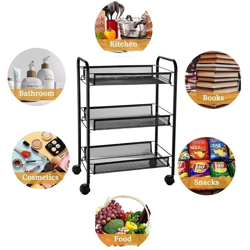 - Оваа мрежеста количка со 3 нивоа е изработена од висококвалитетен метал со издржлив слој отпорен на ‘рѓа, отпорен на корозија, гребење и вода.