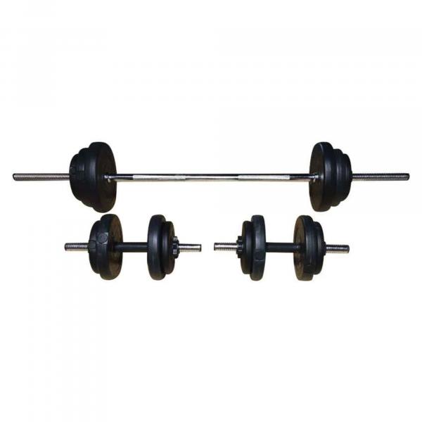 Сет од една долга шипка и две мали шипки за тежини + вклучени тежини од 30kg